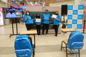 El inicio de las activaciones estuvo a cargo de Ana de Mendoza, representante de UNICEF Perú; Dina Paucar, Embajadora Nacional de Unicef; y los adolescentes Nicole Melgar y Franco Flores, quienes invocaron a la población a tener una actitud positiva frente al retorno a las aulas de los escolares, que han pasado más de 600 días sin escuela.