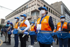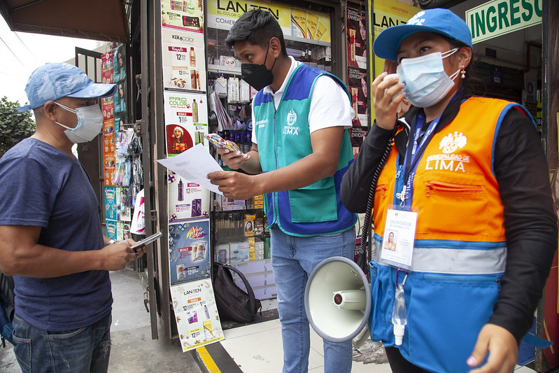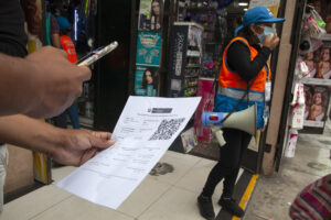 Como parte de la campaña Compra Chévere, 30 brigadas (60 personas en total) de la Municipalidad de Lima sensibilizaron a los asistentes al conglomerado de Mesa Redonda y a los administradores de las galerías sobre la exigencia de la presentación del carné de vacunación contra el COVID-19 para ingresar a los locales comerciales.