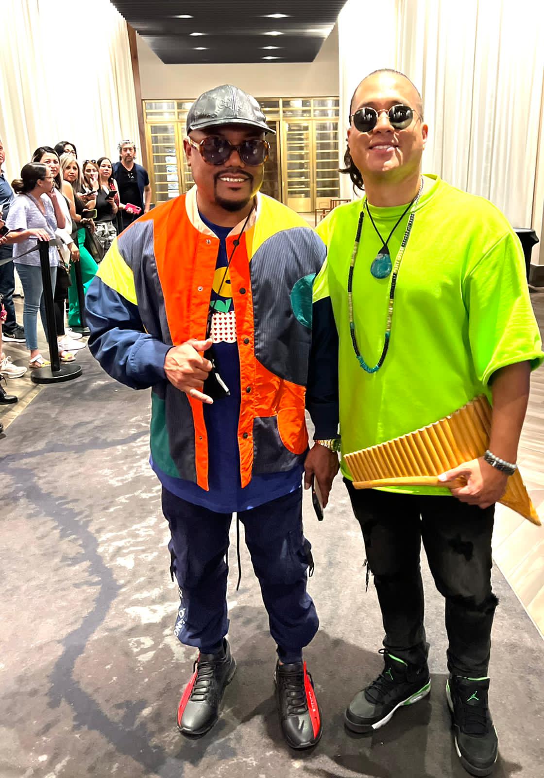 “Me siento muy agradecido por la invitación a ésta ceremonia y por el cariño del público hacia nuestra nueva fusión musical”, expresó el artista. El cantautor del “Perreito andino” se le vio compartiendo con los integrantes de la banda americana Black Eyes Peas, llamando la atención por la mezcla de su zampoña en su reggaetón andino.