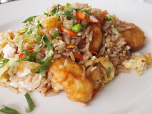 Arroz chaufa con pescado (costo de preparación: 15 soles)