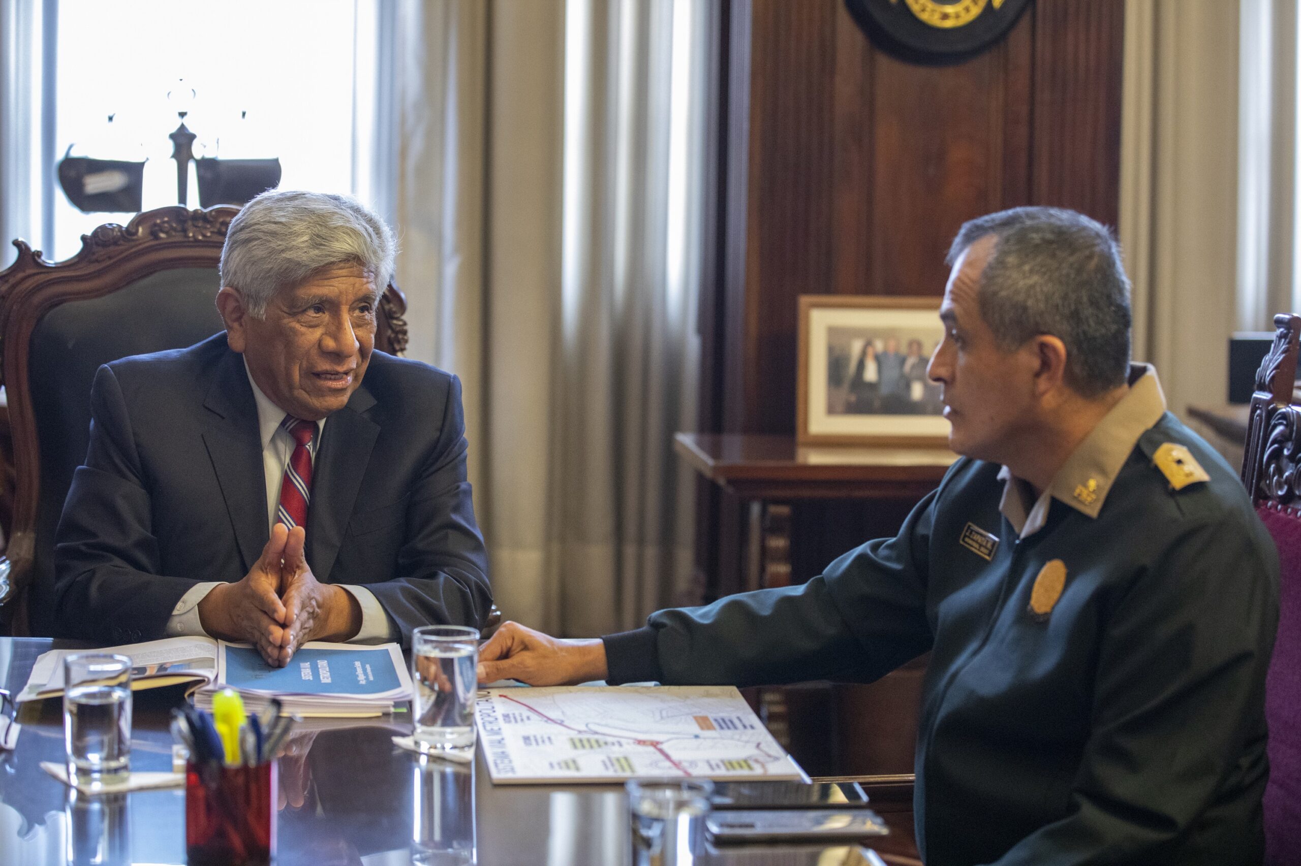 El alcalde de Lima, Miguel Romero Sotelo, se reunió con el jefe de la Región Policial Lima, general PNP José Zapata, para explicarle la propuesta del patrullaje integrado entre el Serenazgo y la Policía Nacional que se aplicaría en la capital.