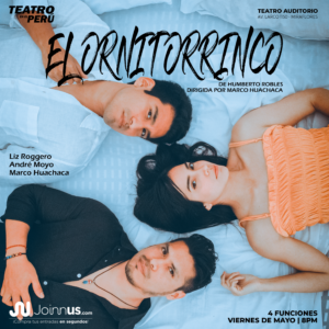 “El ornitorrinco” se encuentra en sus dos últimas funciones este viernes 20 y 27 de mayo a las 8 de la noche en el Teatro Auditorio de Miraflores con las actuaciones de André Moyo, Liz Roggero, Ger Vergara y Marco Antonio Machaca, quien también dirige la obra de Humberto Robles. Entradas a la venta en Joinnus.com