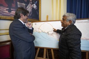 Durante el encuentro, el burgomaestre capitalino expuso los avances y beneficios de la obra de peatonalización del Damero de Pizarro, proyecto que forma parte del Plan Maestro para la Recuperación del Centro Histórico de Lima 2019-2029 con visión al 2035, que viene promoviendo la mejora integral y sostenible de esta parte de nuestra ciudad.