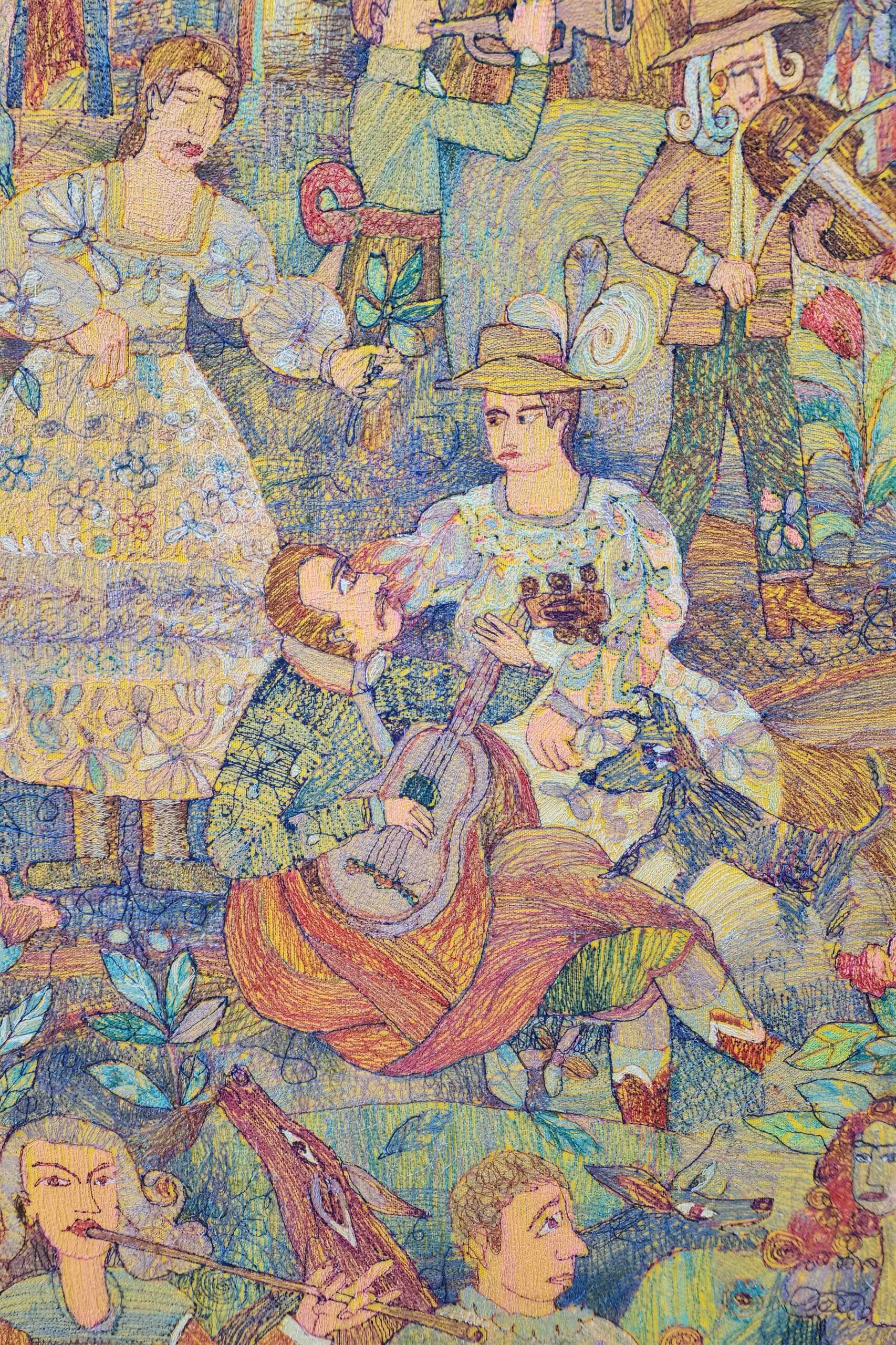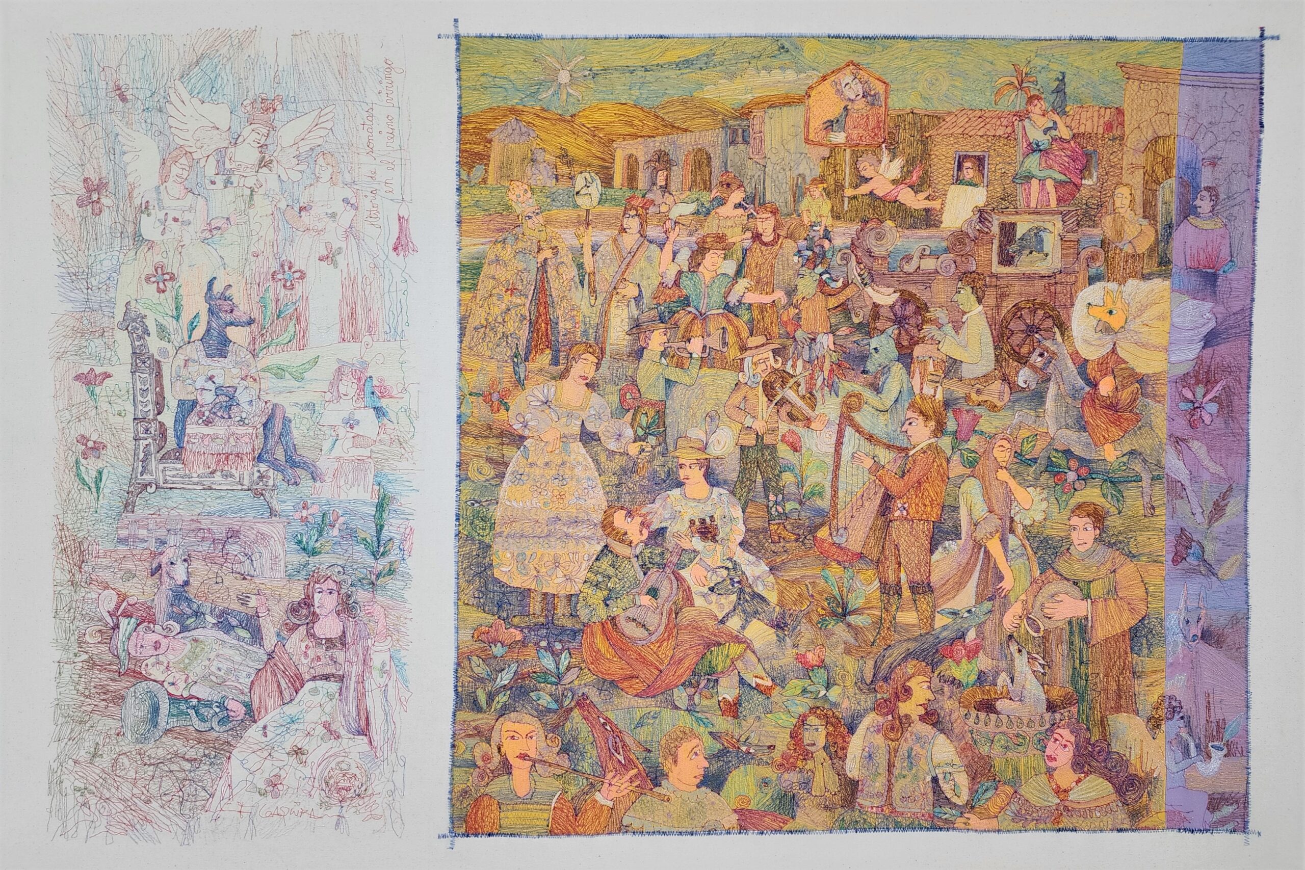 El Banco Central de Reserva del Perú, a través del Museo Central – MUCEN, premia anualmente a creadores de todo el territorio nacional, con el objetivo de incentivar la producción artística contemporánea. En ese sentido, se complace en anunciar el primer premio del XIII Concurso Nacional de Pintura del BCRP, que ha sido otorgado al artista Felipe Coaquira por su obra “Historias de Sonata en el Reino Viringo”, bordada con hilos de fibra sintética y algodón sobre lona y bastidor e inspirada en los tradicionales bordados del Colca. El artista recibirá un premio adquisición de S/30 000 por su obra, así como el compromiso de una muestra individual a realizarse en el MUCEN.