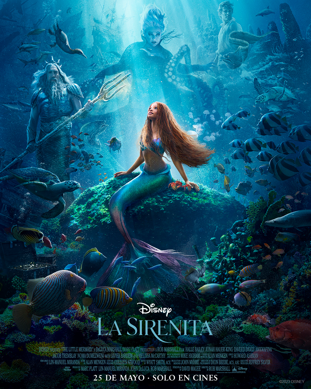 Ya se encuentran disponibles el nuevo tráiler y póster de “La Sirenita”, la nueva película de acción real inspirada en el clásico musical animado de Disney. Dos de las protagonistas de la película, Halle Bailey y Melissa McCarthy, presentaron el tráiler hace unos minutos en la transmisión en directo de la edición 95º de los Premios de la Academia®. “La Sirenita”, dirigida por el visionario cineasta Rob Marshall, estrena exclusivamente en cines de Latinoamérica el jueves 25 de mayo de 2023.