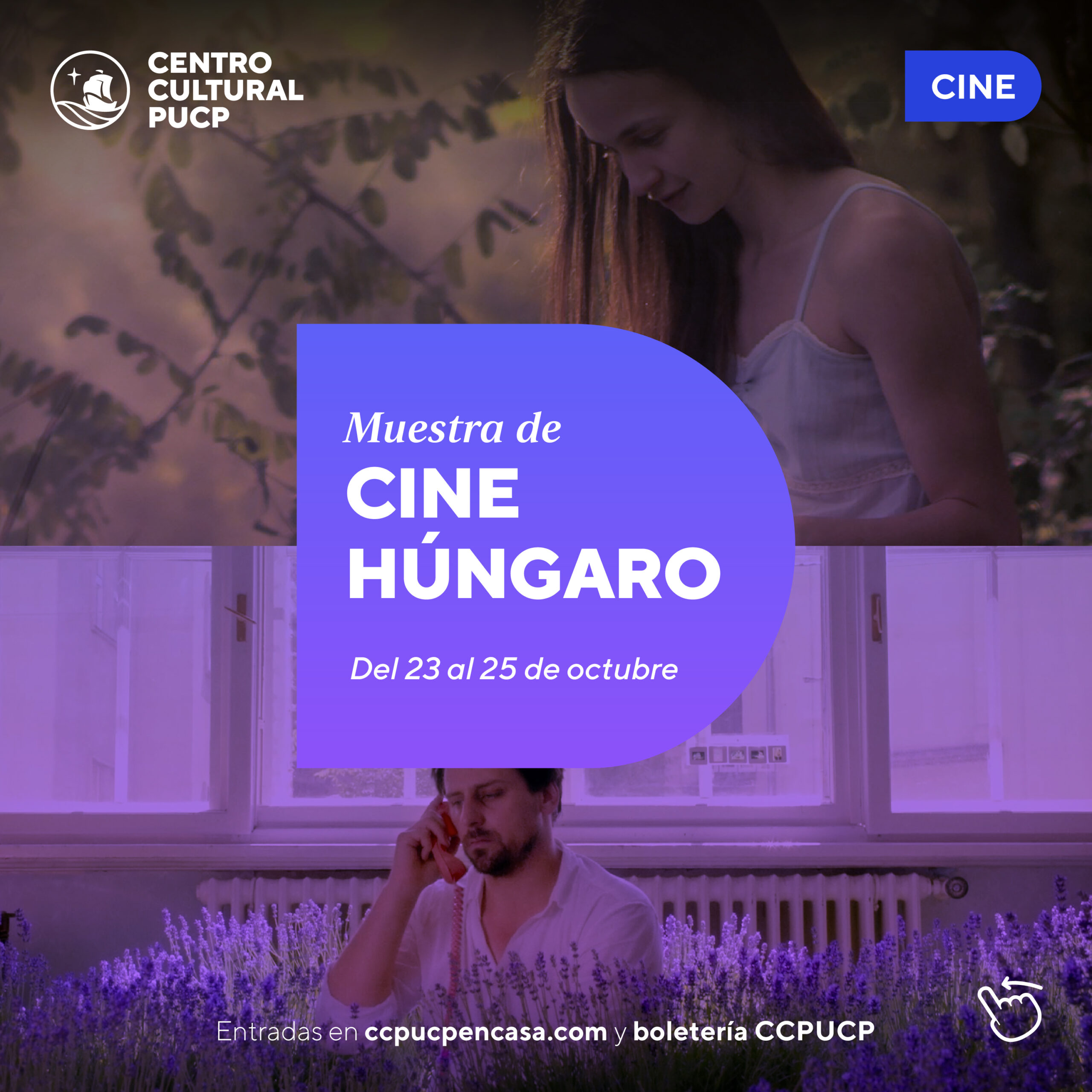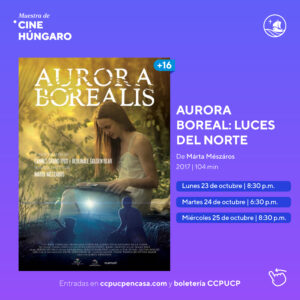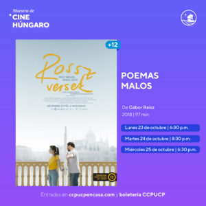 En esta muestra, los amantes de la cultura cinematográfica podrán aprovechar la oportunidad de ver dos proyecciones de películas húngaras en tres noches, desde el lunes 23 hasta el miércoles 25 de octubre. Las entradas ya se encuentran a la venta a 12 soles en precio general en la boletería del Centro Cultural o de manera virtual en ccpucpencasa.com