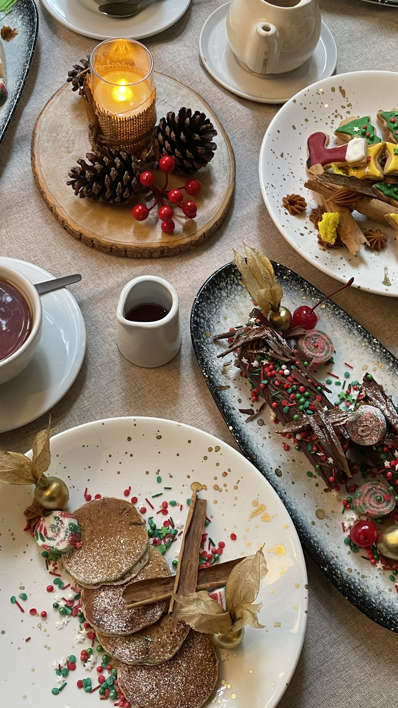 Dulces: Carrot cake navideño, Cheesecake de frutos rojos, Galletas de jengibre o Trufa Noel.