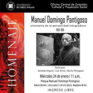 La Universidad Ricardo Palma y la Municipalidad Distrital de Magdalena del Mar rendirán homenaje al connotado pintor peruano Manuel Domingo Pantigoso “el poeta del color”, el miércoles 24 de enero a las 11.00 horas en el parque que lleva el nombre del artista plástico, ubicado en el Malecón Bernales, (Cuadra 12 de la Av. del Ejército).