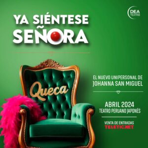 El unipersonal es producido por Dea teatro, empresa productora con más de 25 años de experiencia en la producción de shows y eventos culturales y artísticos. Cabe precisar que “¡Ya siéntese, señora!” con Johanna San Miguel se estrena este sábado 6 de abril, con funciones todos los sábados y domingos de abril, en el Teatro Peruano Japonés. Las entradas las podrás adquirir a través de la plataforma de Teleticket.