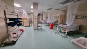 Esta unidad tiene como objetivo garantizar la atención a pacientes afectados por dengue y cuenta con personal altamente capacitado. Cada cama está implementada con mosquitero, monitores y equipos de hidratación para garantizar la atención y tratamiento de los pacientes.