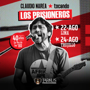 Claudio Narea, como parte fundamental de Los Prisioneros, fue coautor de muchas de estas canciones y ha seguido una destacada carrera como solista. Este concierto especial no solo celebrará el legado de “La Voz de los 80”, sino que también será una oportunidad para que los seguidores peruanos revivan esos momentos históricos y para las nuevas generaciones de descubrir la fuerza y el mensaje de la banda. El concierto también tendrá como banda invitada a Velvet, quién nos traerá un tributo al rock de los 80 y 90, con la voz de su gran vocalista Mariana Polar.