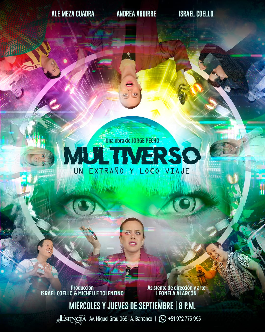 Llega en el mes de septiembre al Teatro Esencia la obra de texto “Multiverso, un extraño y loco viaje”, bajo la dirección y dramaturgia de Jorge Pecho. Se presenta todos los miércoles y jueves a las 8 de la noche. Gabriela es una mujer sumamente estructurada y llena de paradigmas, hija de uno de los científicos cuánticos más reconocidos del mundo, estando a punto de convertirse en una de las abogadas más reconocidas del país se topa con un problema, su enamorado termina siendo un gamer con poca higiene personal, llena de estrés por querer cambiarlo a cualquier costo, robará uno de los inventos de su padre, el multidimensionador, un aparato que te permite saltar de dimensión en dimensión, hasta encontrar la dimensión perfecta. Sin dudarlo lo usará, sin saber todas las desventuras que desatará en su “Perfecta vida”. ¿Si pudieras también poder tener el control de cambiar lo que no te gusta con solo un botón? ¿Lo usarías? ¿Pero estarías dispuesto a afrontar las consecuencias?