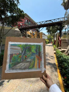 Este curso taller busca reforzar conocimientos en torno a la técnica de pintura al aire libre y el pintado rápido. Son 4 sesiones donde se partirá de conceptos teóricos en torno al paisaje para dar pase al trabajo de campo, pintando en el icónico y pintoresco barrio de Barranco. Se ha escogido como espacio principal para pintar al aire libre: La Bajada de Baños.