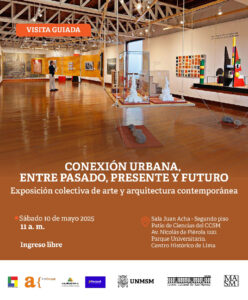 El Centro Cultural de San Marcos invita a la exposición Conexión urbana: Entre pasado, presente y futuro. Exposición colectiva de arte y arquitectura contemporánea, propuesta expositiva de la Asociación Arte Corpus y el Estudio Cigarini Saavedra, que fue seleccionada para integrar el programa de exposiciones temporales 2025 del Museo de Arte de San Marcos. Esta exposición colectiva presenta las obras de destacados artistas y arquitectos contemporáneos, cuyas creaciones están inspiradas en el entorno urbano. Su objetivo es fomentar la reflexión sobre la ciudad, invitando a valorar sus diversas facetas y a contemplar las transformaciones que ha experimentado a lo largo del tiempo.