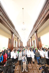 El ministro de Salud, César Vásquez Sánchez, llegó hasta el Hospital Nacional Dos de Mayo para saludar y felicitar a los equipos médicos que han protagonizado dos hitos trascendentales para la salud del país: el primer trasplante renal de donante vivo realizado en este establecimiento y la cirugía robótica número 207, ambos procedimientos ejecutados con éxito.