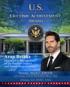 Atlanta, Georgia— ¡Enhorabuena! El destacado actor Arap Bethke será distinguido con el U.S. Capitol Lifetime Achievement Award y la condecoración “The Capitol Medal”, en una ceremonia que reconoce el liderazgo, la excelencia profesional y el impacto positivo dentro de la comunidad en los Estados Unidos.