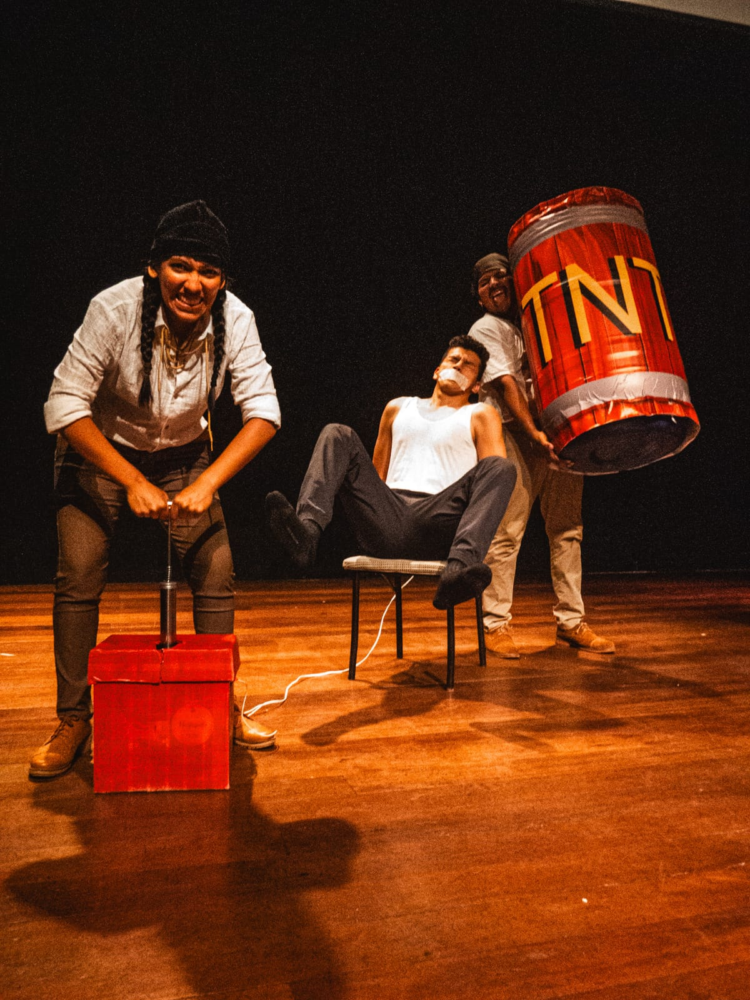 La puesta en escena tuvo una primera temporada en febrero del 2025 en el Auditorio del Museo de Arte de Lima (MALI). En la dirección teatral se profundiza en una búsqueda sostenida por el teatro físico y la lucha escénica como motores narrativos, articulados con una comedia de tono absurdo y caricaturesco que privilegia el ritmo, la precisión y el juego corporal: “la propuesta se construye en colaboración con el equipo de dirección de movimiento a cargo de Gabriel Soto (diseño de movimiento) y Paolo Ríos (asistencia de diseño de movimiento) quien junto a David Dávila como asistente de dirección, van sosteniendo un trabajo donde el cuerpo -y la coreografía de combate- es parte central del espectáculo”, nos dice Luca Reátegui.