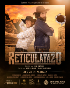 Ojo de Loca Teatro y Grito de Calma producciones, junto a la compañía teatral Coliseo Palestra, regresan por una corta temporada con la obra “Reticulatazo”. Escrita por Nicolás Bazán y Fabrizzio Ferreyra, la puesta familiar se estrenará el día sábado 21 de marzo a las 5:00 p.m. en el Centro Español del Perú. Dirigida por Luca Reátegui, “Reticulatazo” nos transporta hasta Puya Alta donde conoceremos al dúo de cazarrecompensas Retícula y Culatazo quienes trabajan para el DREFURE (División de Recuperación de Fugitivos Relevantes).